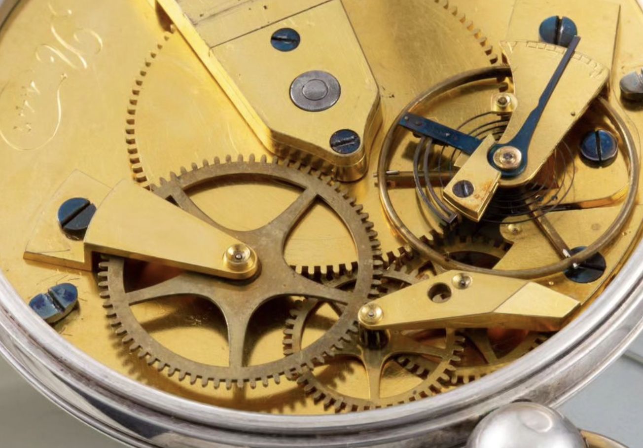 There are very few watches with no visible signature on the dial. Most of Breguet’s output not bearing a visible signature on the dial consists of pieces not entirely made in Breguet’s workshop. This watch was most probably partially made in Decombaz’ workshop in Geneva. Decombaz was one of Breguets’s favoured sources for ébauches to finish in-house, or complete watches made to Breguet’s design. Decombaz is known to have provided souscription ébauches to Breguet’s workshop in Paris, as stated in Breguet’s ledgers.