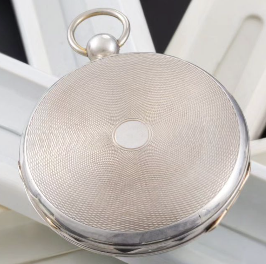 Description: Gilt brass, front wound, souscription movement of the second intermediate type, three armed balance with old type temperature compensation, no parachute. Ruby cylinder escapement, with escape underneath the dial. Plate engraved with signature and number oriented opposite of each other, which is rather typical of this version. Enamelled copper dial with small Arabic numbers outside of the chapter ring, NO actual signature on the dial, but secret signature engraved below 12 ‘Souscription, No. 447, Breguet’. Original blued steel hand with smooth bump at the edge. Later silver case with gold hinges (mid 19th century, probably of American manufacture) with guilloched back.