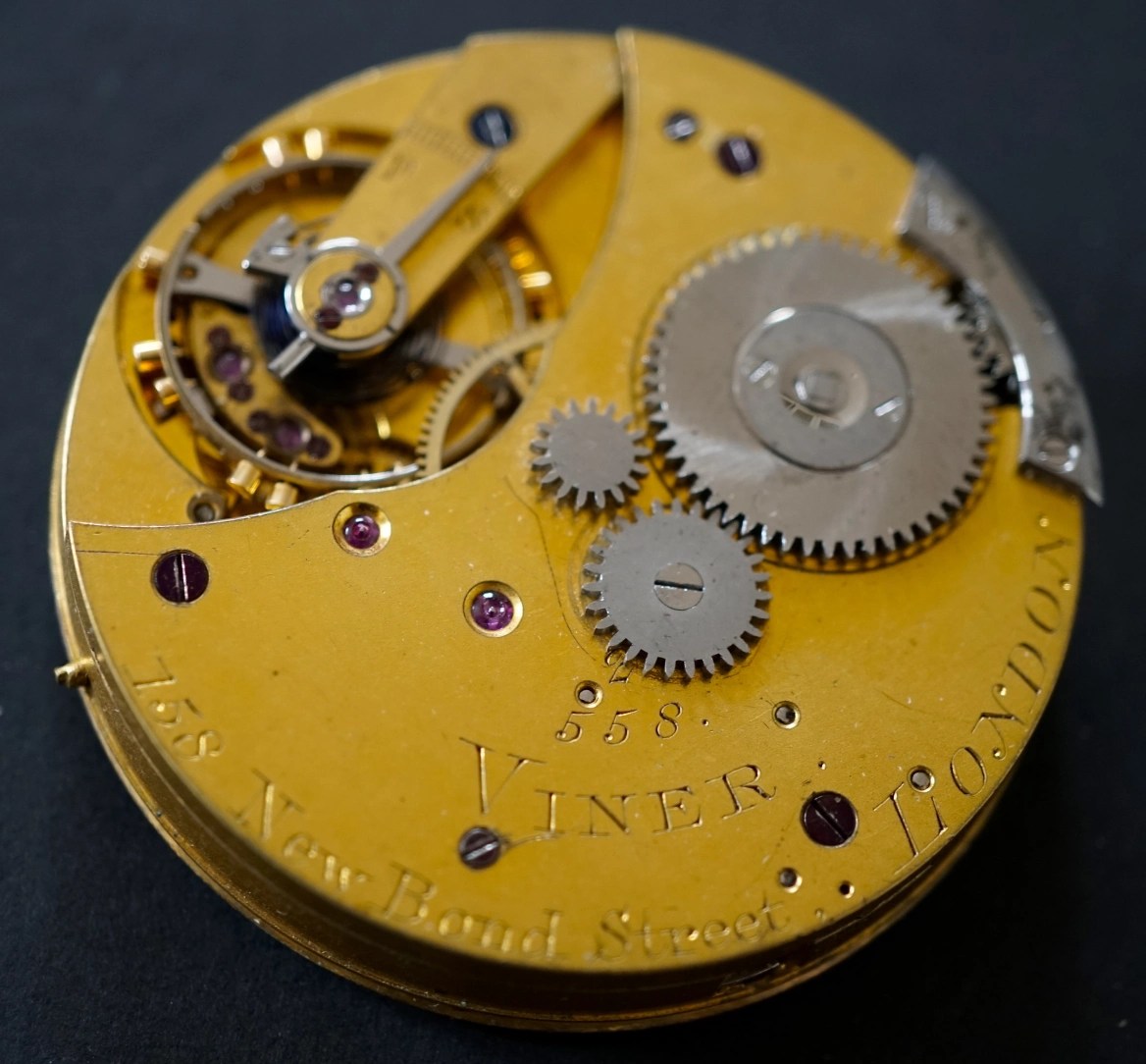 Charles Edward Viner (1788 – 1875) completed an apprenticeship with Thomas Savage in London from 22.09.1802. On 03.05.1813 he became a member of the Clockmakers Company. He was first based in Sweetings Alley, Cornhill, then moved to 233 Regent Street, London, where he worked from 1826 to 1835. He was then based at 235 Regent Street, Royal Exchange until 1855. He also had properties in Old Bond Street between 1844 and 1857, Sackville Street 1856-1867 and New Bond Street 1868-1869. He made pocket and marine chronometers with movements by Parkinson & Frodsham and pocket watches with duplex escapement, the latter also with pump winding. In 1824 he became a business partner of Hoskins for many years. Mann traded under the name Viner & Hoskins and Viner & Co. According to Herbert Blockley, he was the successor to Viner.