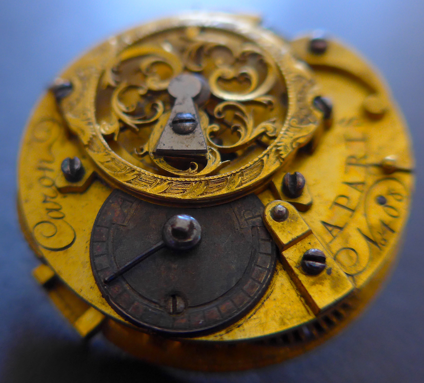 André – Charles Caron (26. 04. 1698 – 23. 10.1775) was the master of Jean – Antoine Lépine. Not much is known about his personal life and very few pieces from his production have survived. Caron was associated with Lépine from 1756 and 1769 during which the pieces were supposedly signed ‘Caron et Lépine’, but none with this combined signature have survived. 1756 Lépine married Caron’s daughter Madeleine – François Caron. 1766 Lépine succeeded to Caron. André – Charles Caron was the father of the famous Pierre – Augustin Caron (later de Beaumarchais).