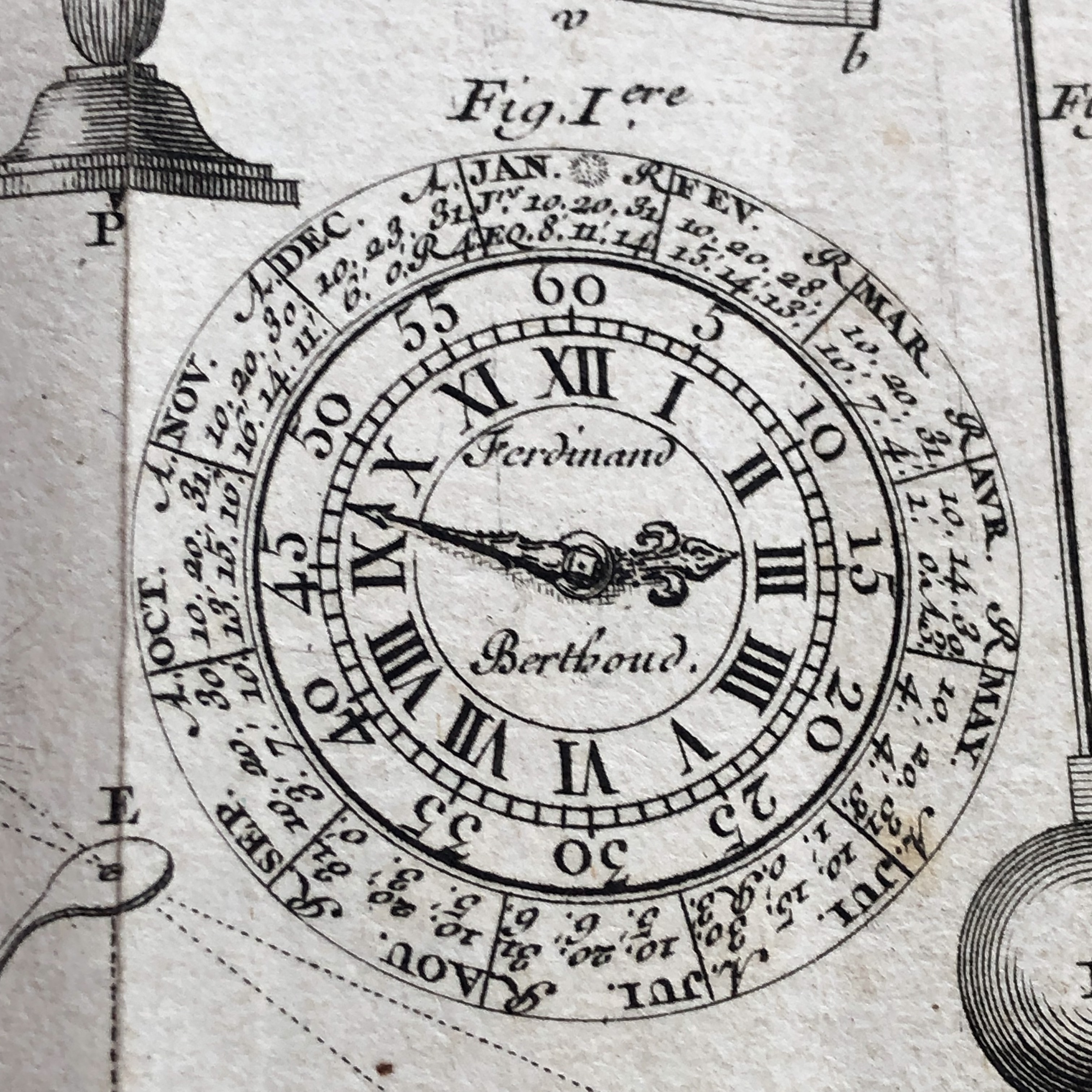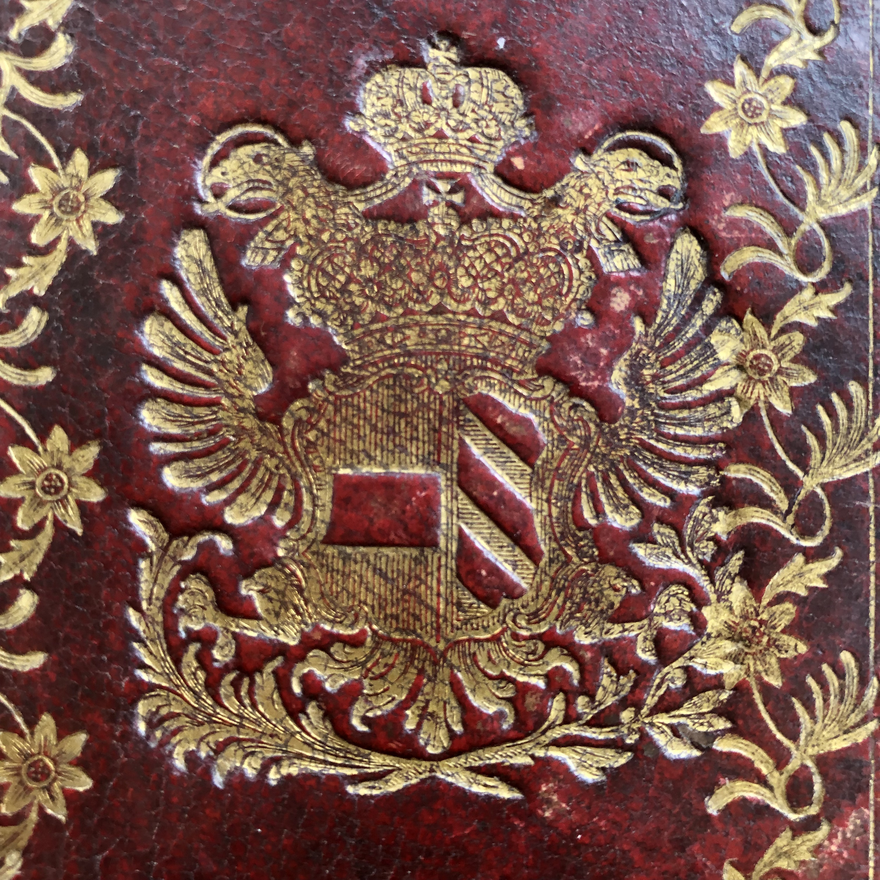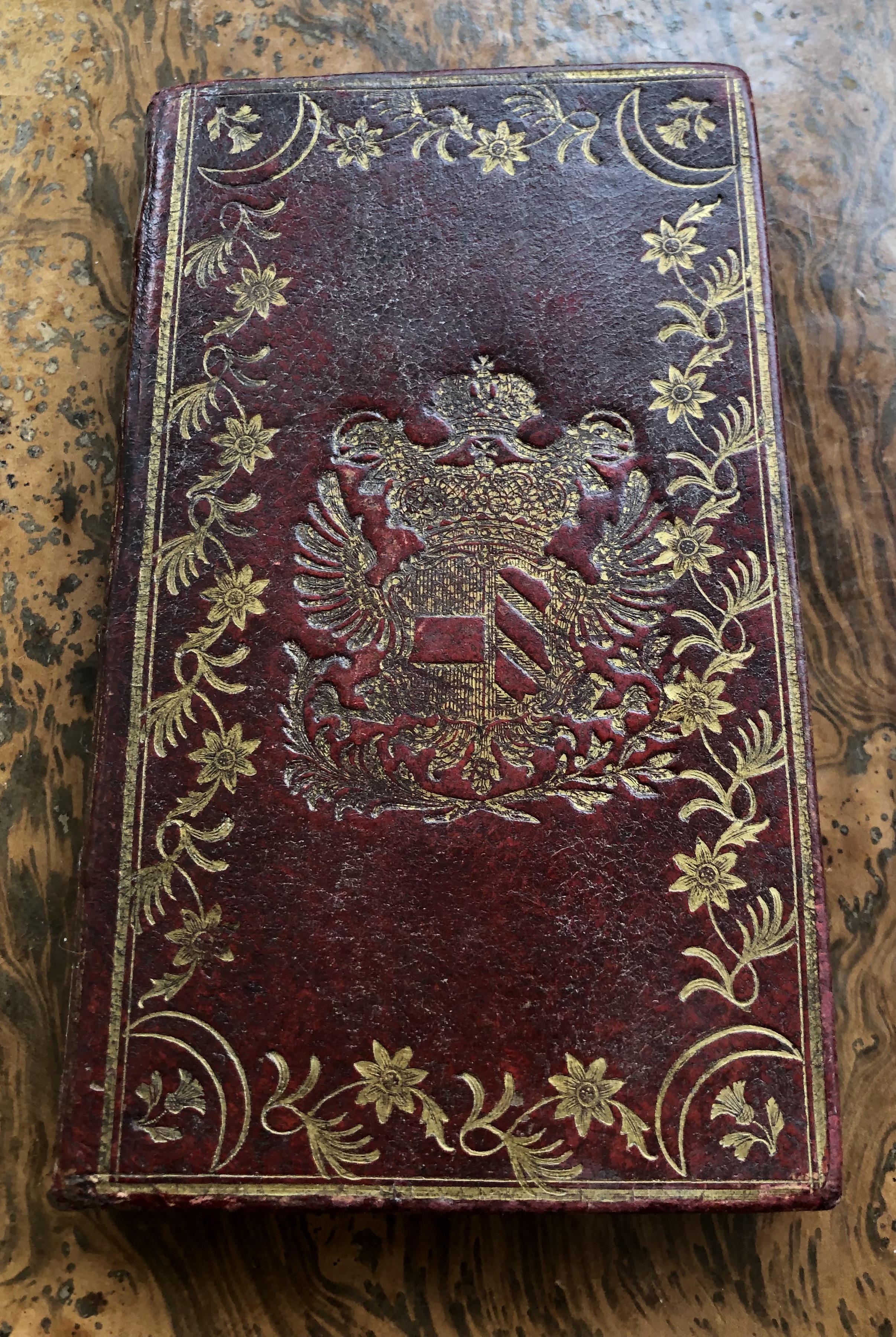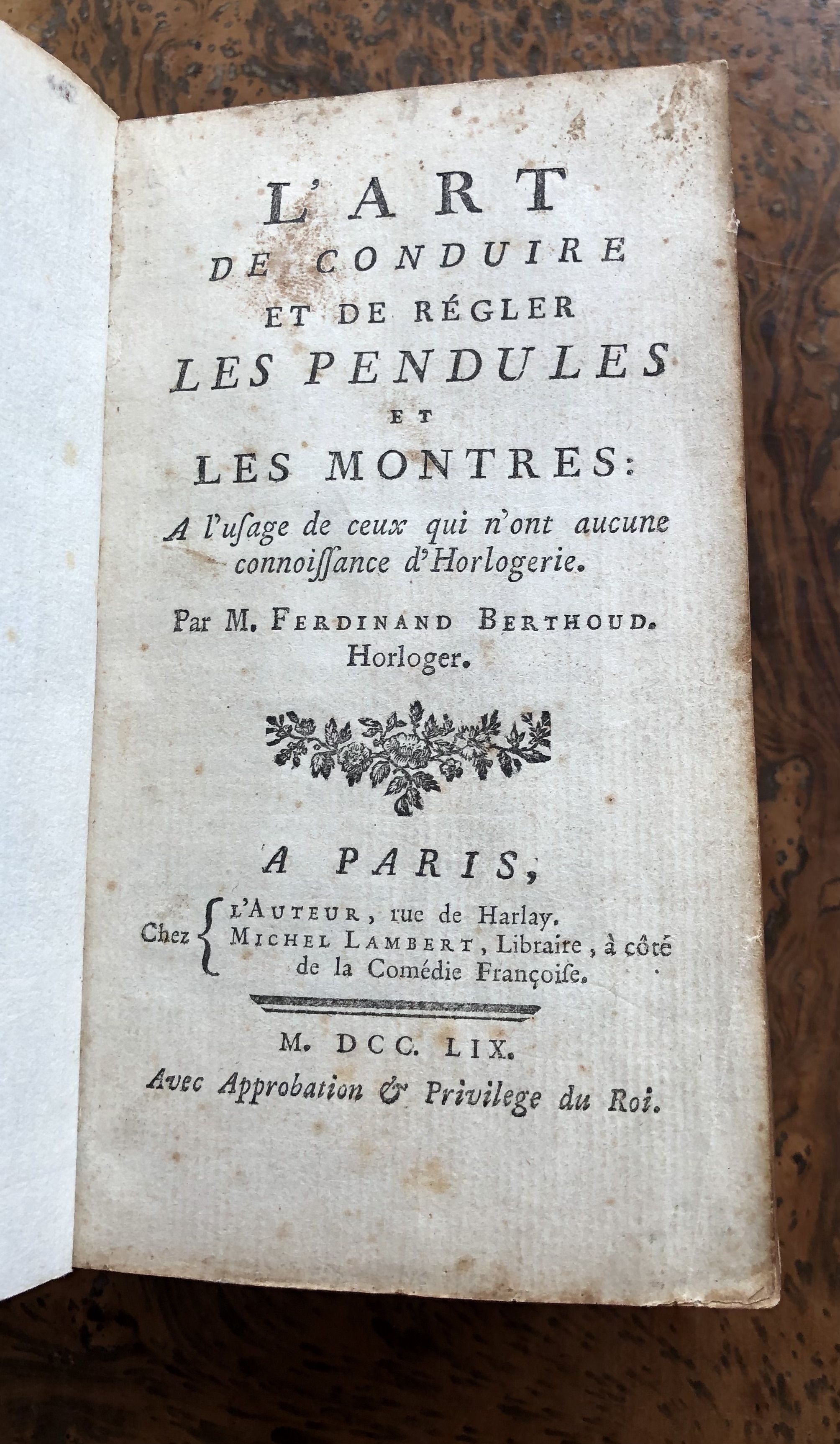 This book, written by Ferdinand Berthoud, explaining how to regulate, adjust and keep running watches and clocks properly, shows the gilt coat of arms of the Empress Maria-Theresia of Austria (1717 – 1780), mother of Marie-Antoinette, on the front and back cover. It was part of the imperial library in Vienna until its transfer to a private collection in Britanny, France towards the middle of the 19th century, where it was kept by an aristrocratic family until it was passed on to a Swiss private collection.