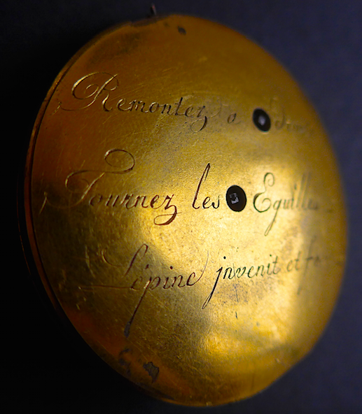 Later English enamelled copper dial. The movement also includes a new type of hidden case spring and has a ‘cuvette’ (dust cap) with the usual engraved instructions and ‘Lépine Invenit et Fecit’.