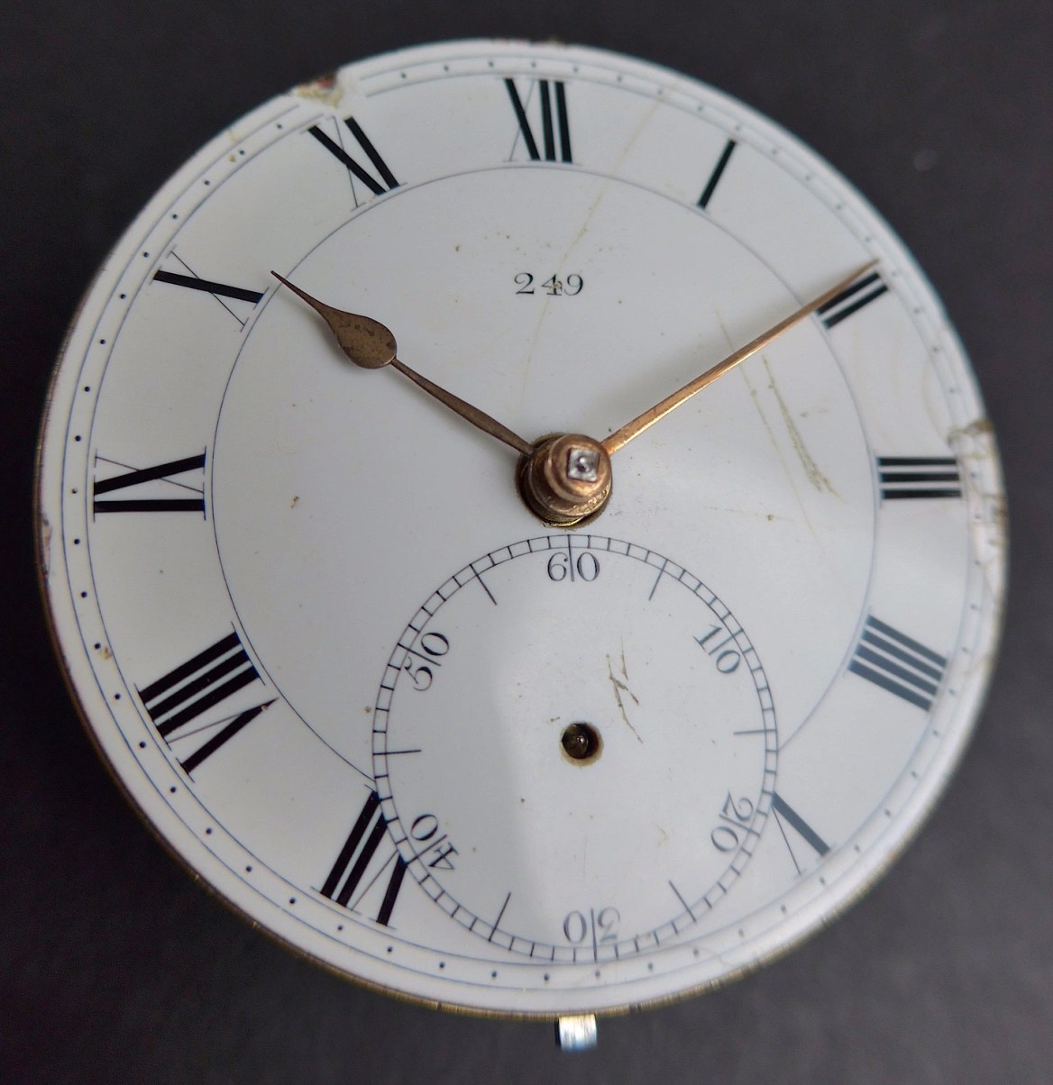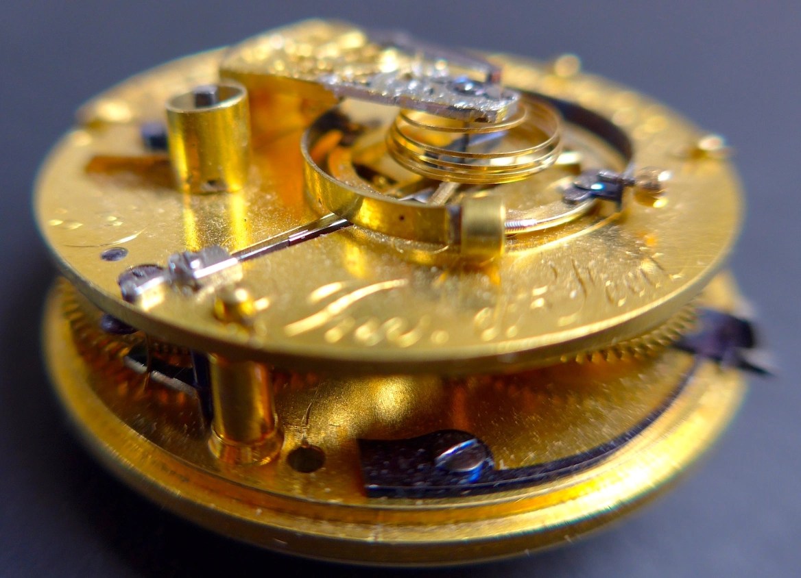 Engraved on the backplate ‘John Arnold & Son, Inv(eni)t et Fecit, No. 249/550’. The numbering reveals the movement belonging to the ‘second kind’ (301 – series) of pocket chronometers.