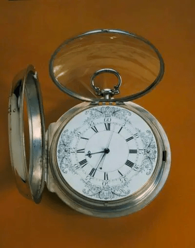 This new version has a regulator dial. The wheel work needed for separating the three hands has less play as compared to the conventional concentrical system, which usually increases precision. Thomas Mudge will use this system for his wooden cased marine timekeeper built in 1774, which will be the most precise watch for over 100 years. Latter piece by Mudge is in the British Museum (Reg. No. 1958,1006.2119).