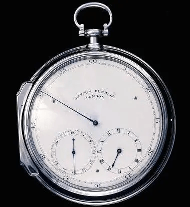 Kendall produced a pocket chronometer, which is now in the Museum of the Worshipful Company of Clockmakers, Guildhall, London it is signed on the back plate L. Kendall London B+y and is in a silver pair case hallmarked for 1786, inside the case are watch papers printed Vulliamy & Sons, 74 Pall Mall, London this watch was presented to the Clockmakers Company in 1849 by B.L. Vulliamy and was almost certainly purchased by his father Benjamin Vulliamy at the sale of Larcum Kendall’s Workshop in December 1790, Lot 37.