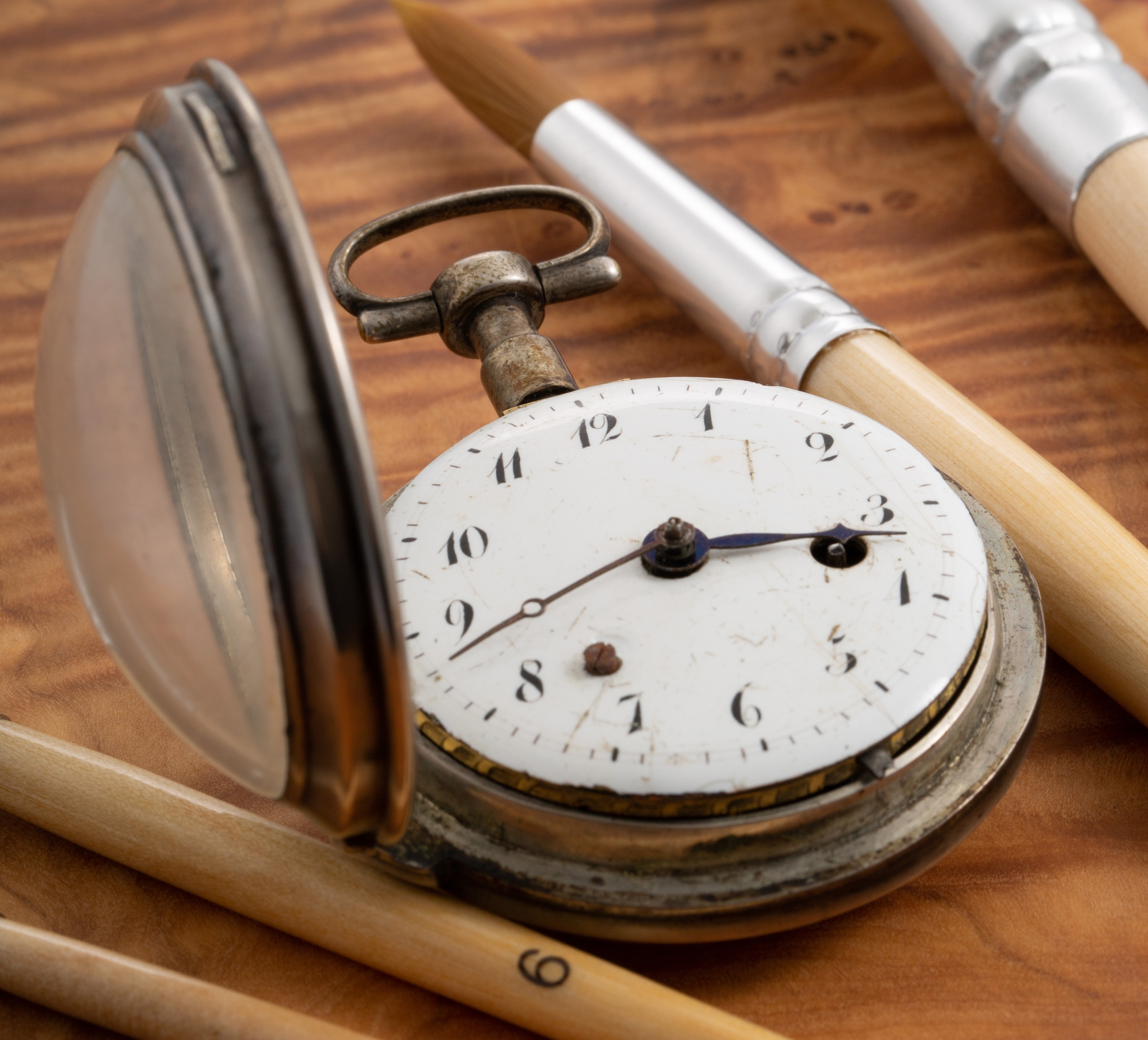The inverted fusee (tip of the fusee towards the dial) is a special feature of a few rare examples of Pierre Le Roy’s work, distributing the force on the chain more evenly than in the normally used configuration with the fusee tip towards the back plate. The construction of such an inverted fusee is more complex and delicate, so as towards 1770 movements got completely of different construction after the introduction of the Lépine-movement type, no one adopted this amelioration.