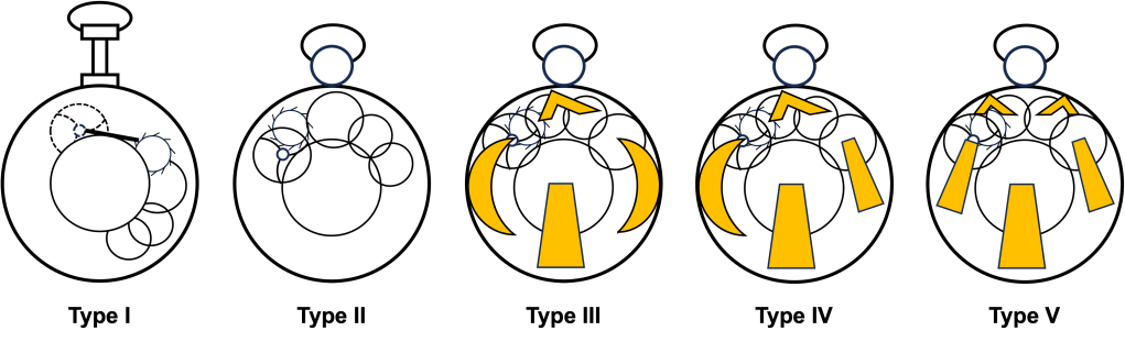 There is one version of this type numbered #15 which has been described to be an even more primitive version than ‘Type I’ and identified as the prototype of the souscription watches. However, this attribution has been made only taking in to consideration the small production number. If analysed the watch in its entirety, it is clear that it is a variant of ‘Type II’ with a triangular back plate instead of a round one and the small production number, certainly belonging to the 3rd series, would date the movement not earlier than 1793. To further sustain the attribution to ‘Type II’ is the fact, that the balance wheel is placed on the back side and not on the dial side as in ‘Type I’, which is a sign of a later development as this position of the balance wheel will be kept up to the definitive marketed version (Type V).
